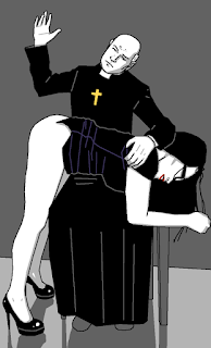 camera lingers on the view: the immobile girl; her obediently offered bottom.